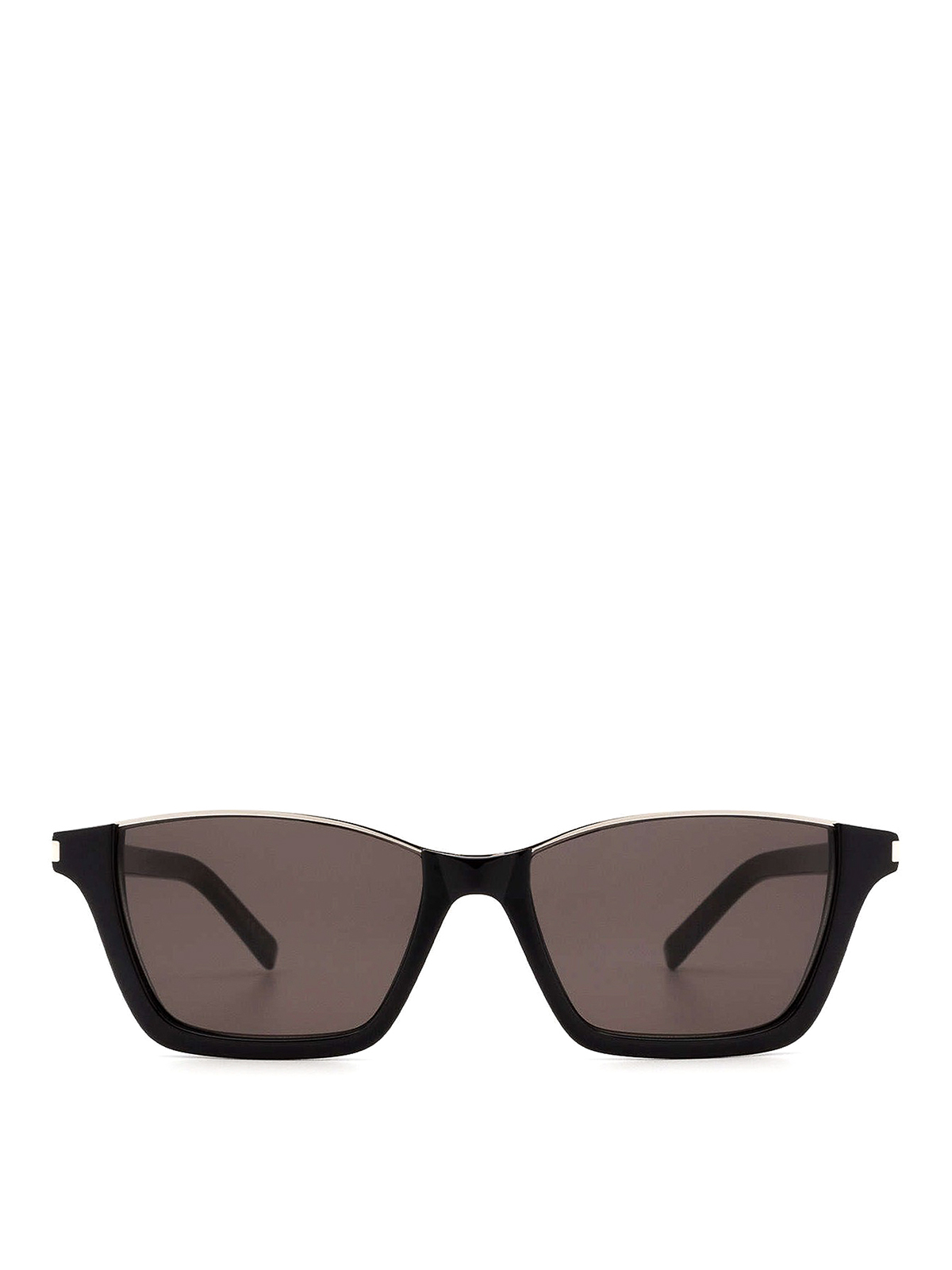 Acetate cat-eye sunglasses featuring dark lenses, contrasting upper frame, class bridge and embossed logo on the temple.